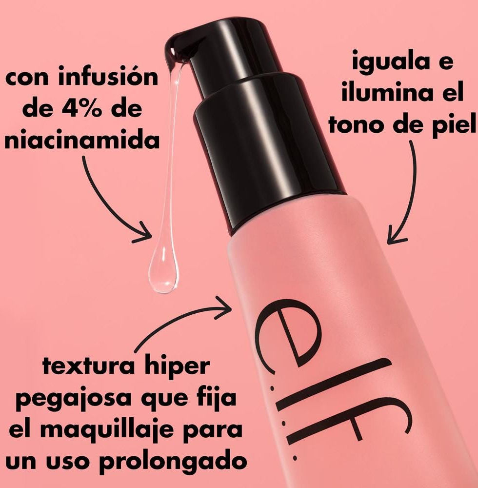 El Power Grip Primer + 4% Niacinamide de e.l.f. cosmetics prepara la piel para una aplicación de maquillaje impecable, mientras ayuda a suavizarla y darle un aspecto más luminoso.